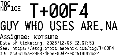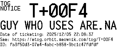 Orbit eTOG Listing Service: T+00F4 GUY WHO USES ARE.NA