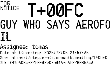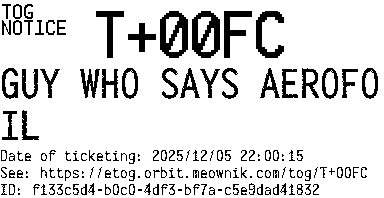 Orbit eTOG Listing Service: T+00FC GUY WHO SAYS AEROFOIL