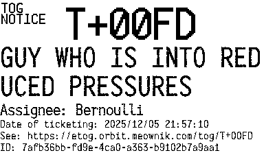 Orbit eTOG Listing Service: T+00FD GUY WHO IS INTO REDUCED PRESSURES