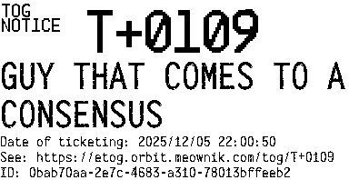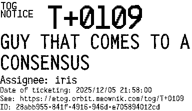 Orbit eTOG Listing Service: T+0109 GUY THAT COMES TO A CONSENSUS