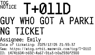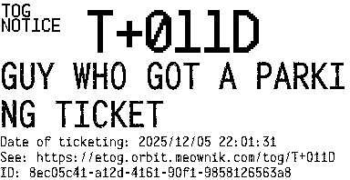 Orbit eTOG Listing Service: T+011D GUY WHO GOT A PARKING TICKET