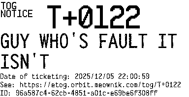 Orbit eTOG Listing Service: T+0122 GUY WHO'S FAULT IT ISN'T