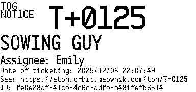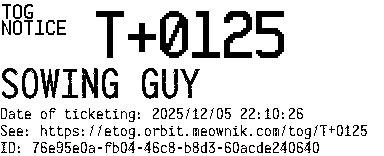 Orbit eTOG Listing Service: T+0125 SOWING GUY