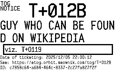 Orbit eTOG Listing Service: T+012B GUY WHO CAN BE FOUND ON WIKIPEDIA