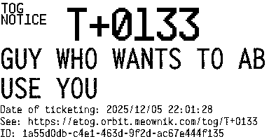 Orbit eTOG Listing Service: T+0133 GUY WHO WANTS TO ABUSE YOU
