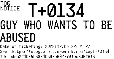 Orbit eTOG Listing Service: T+0134 GUY WHO WANTS TO BE ABUSED