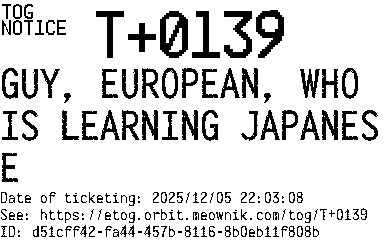 Orbit eTOG Listing Service: T+0139 GUY, EUROPEAN, WHO IS LEARNING JAPANESE