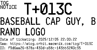Orbit eTOG Listing Service: T+013C BASEBALL CAP GUY, BRAND LOGO