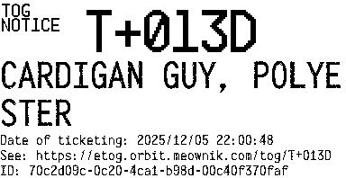 Orbit eTOG Listing Service: T+013D CARDIGAN GUY, POLYESTER