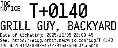 Orbit eTOG Listing Service: T+0140 GRILL GUY, BACKYARD