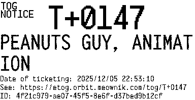 Orbit eTOG Listing Service: T+0147 PEANUTS GUY, ANIMATION