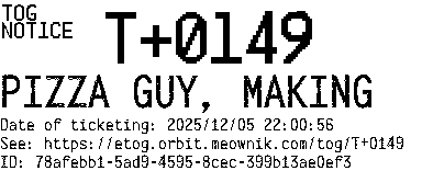 Orbit eTOG Listing Service: T+0149 PIZZA GUY, MAKING
