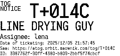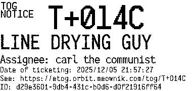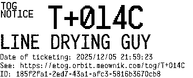 Orbit eTOG Listing Service: T+014C LINE DRYING GUY