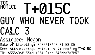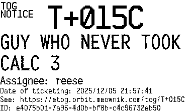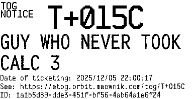 Orbit eTOG Listing Service: T+015C GUY WHO NEVER TOOK CALC 3