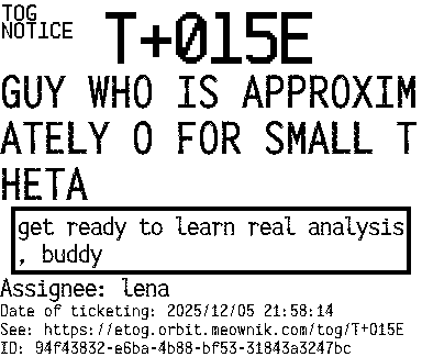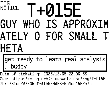 Orbit eTOG Listing Service: T+015E GUY WHO IS APPROXIMATELY 0 FOR SMALL THETA