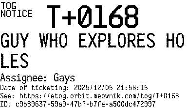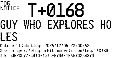 Orbit eTOG Listing Service: T+0168 GUY WHO EXPLORES HOLES