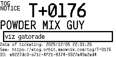 Orbit eTOG Listing Service: T+0176 POWDER MIX GUY