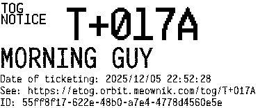 Orbit eTOG Listing Service: T+017A MORNING GUY