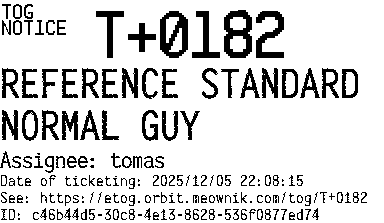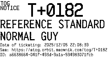 Orbit eTOG Listing Service: T+0182 REFERENCE STANDARD NORMAL GUY