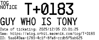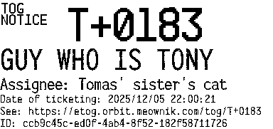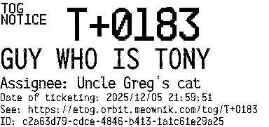 Orbit eTOG Listing Service: T+0183 GUY WHO IS TONY