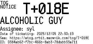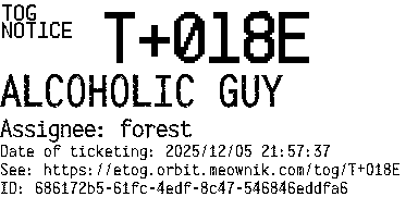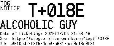 Orbit eTOG Listing Service: T+018E ALCOHOLIC GUY