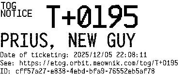 Orbit eTOG Listing Service: T+0195 PRIUS, NEW GUY