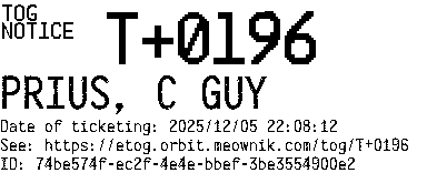 Orbit eTOG Listing Service: T+0196 PRIUS, C GUY