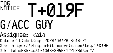 Orbit eTOG Listing Service: T+019F G/ACC GUY