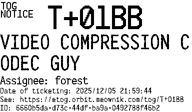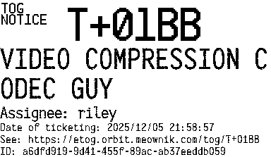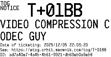 Orbit eTOG Listing Service: T+01BB VIDEO COMPRESSION CODEC GUY