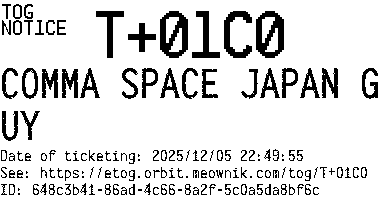 Orbit eTOG Listing Service: T+01C0 COMMA SPACE JAPAN GUY