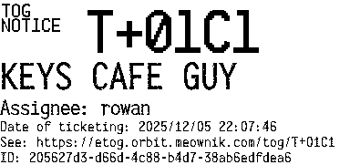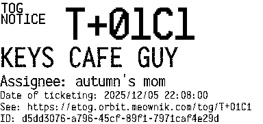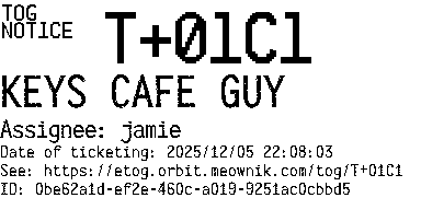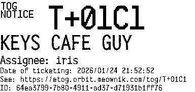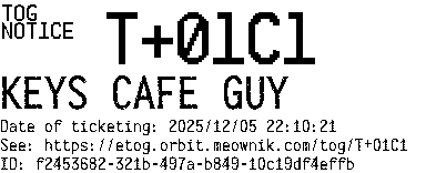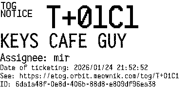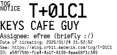 Orbit eTOG Listing Service: T+01C1 KEYS CAFE GUY
