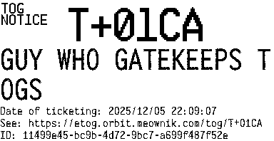 Orbit eTOG Listing Service: T+01CA GUY WHO GATEKEEPS TOGS