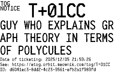 Orbit eTOG Listing Service: T+01CC GUY WHO EXPLAINS GRAPH THEORY IN TERMS OF POLYCULES