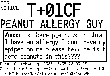 Orbit eTOG Listing Service: T+01CF PEANUT ALLERGY GUY