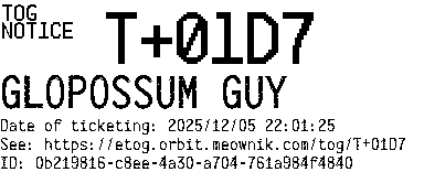 Orbit eTOG Listing Service: T+01D7 GLOPOSSUM GUY