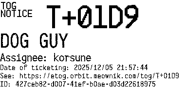 Orbit eTOG Listing Service: T+01D9 DOG GUY