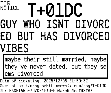 Orbit eTOG Listing Service: T+01DC GUY WHO ISNT DIVORCED BUT HAS DIVORCED VIBES