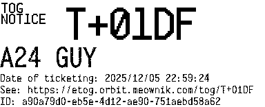 Orbit eTOG Listing Service: T+01DF A24 GUY
