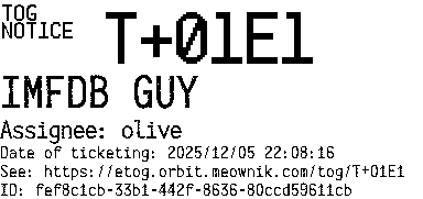 Orbit eTOG Listing Service: T+01E1 IMFDB GUY