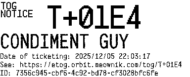 Orbit eTOG Listing Service: T+01E4 CONDIMENT GUY