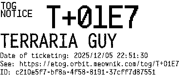 Orbit eTOG Listing Service: T+01E7 TERRARIA GUY