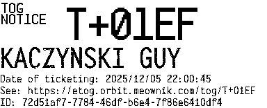 Orbit eTOG Listing Service: T+01EF KACZYNSKI GUY
