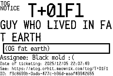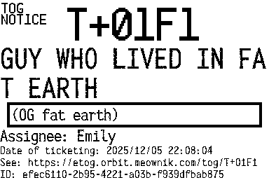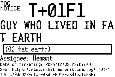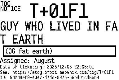 Orbit eTOG Listing Service: T+01F1 GUY WHO LIVED IN FAT EARTH