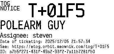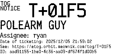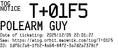 Orbit eTOG Listing Service: T+01F5 POLEARM GUY