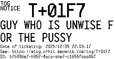 Orbit eTOG Listing Service: T+01F7 GUY WHO IS UNWISE FOR THE PUSSY