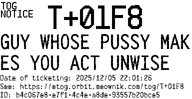 Orbit eTOG Listing Service: T+01F8 GUY WHOSE PUSSY MAKES YOU ACT UNWISE