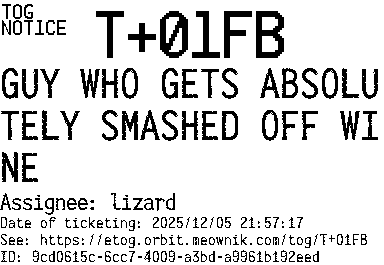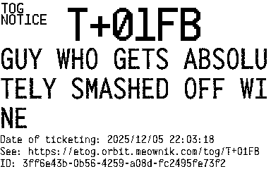 Orbit eTOG Listing Service: T+01FB GUY WHO GETS ABSOLUTELY SMASHED OFF WINE