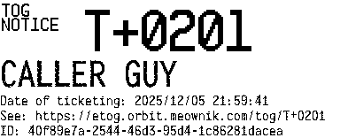 Orbit eTOG Listing Service: T+0201 CALLER GUY