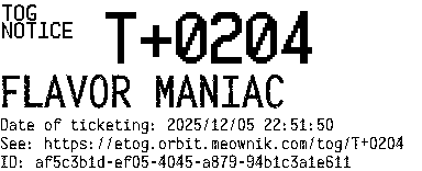Orbit eTOG Listing Service: T+0204 FLAVOR MANIAC