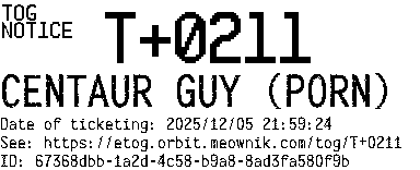 Orbit eTOG Listing Service: T+0211 CENTAUR GUY (PORN)